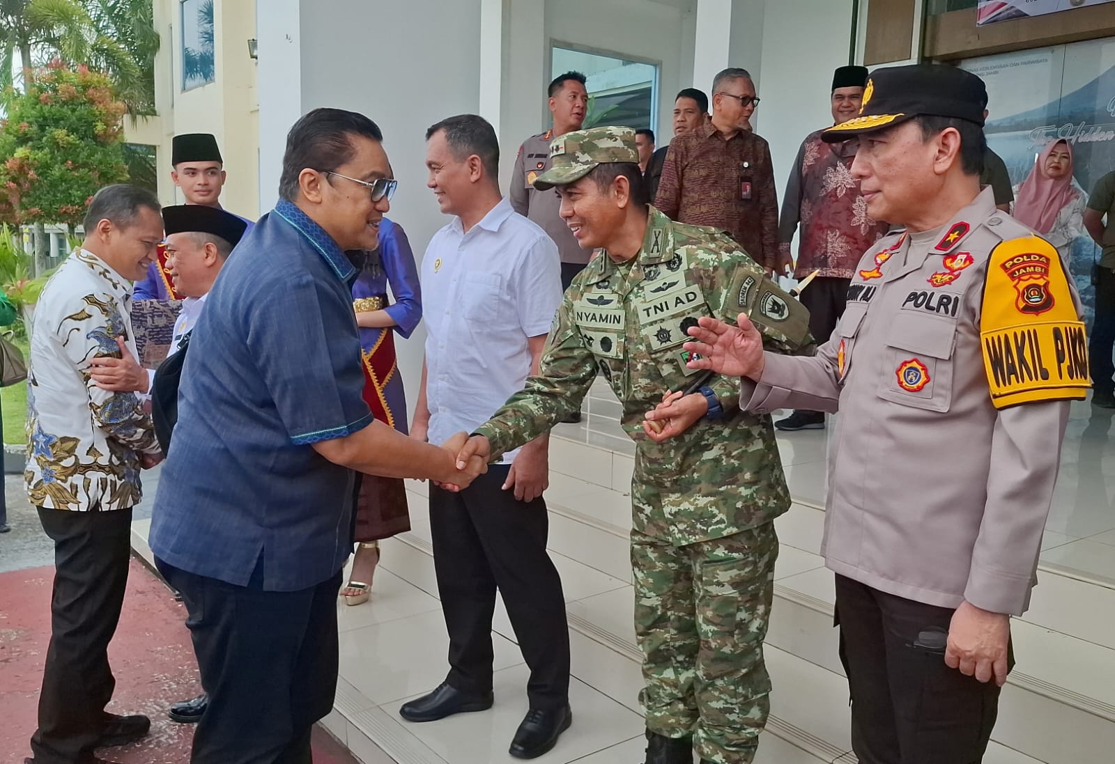 Zonabrita.com – Komandan Korem 042/Gapu, Kolonel Inf Nyamin, S.I.P., M.M., bersama Gubernur Jambi dan unsur Forkopimda Provinsi Jambi menerima kunjungan kerja (kunker) Komisi II DPR RI di Bandara Sultan Thaha, Kota Jambi, dalam rangka pengawasan terhadap Badan Usaha Milik Daerah (BUMD) dan bank daerah yang berkontribusi terhadap pembangunan dan kesejahteraan masyarakat, Jum’at (20/02/2026).