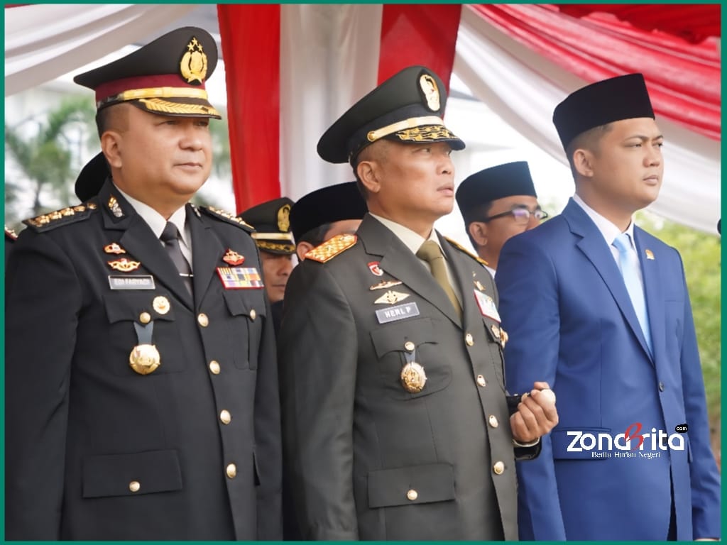 Gubernur Jambi Dr. H. Al Haris, S.Sos., M.H., langsung memimpin jalannya upacara. Selain Danrem 042/Gapu, seluruh unsur Forum Koordinasi Pimpinan Daerah (Forkopimda) Provinsi Jambi, pejabat TNI-Polri, tokoh masyarakat, pelajar, dan organisasi kemasyarakatan turut hadir memenuhi lapangan, menunjukkan representasi kuat dari seluruh elemen bangsa.