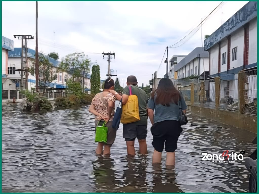 Zonabrita.com – Kawasan Industri Medan (KIM) II di Jalan Pulau Karimun I, Kelurahan Mabar, Kecamatan Medan Deli, kembali terendam banjir setinggi hampir selutut orang dewasa pada Sabtu (4/10/2025).
