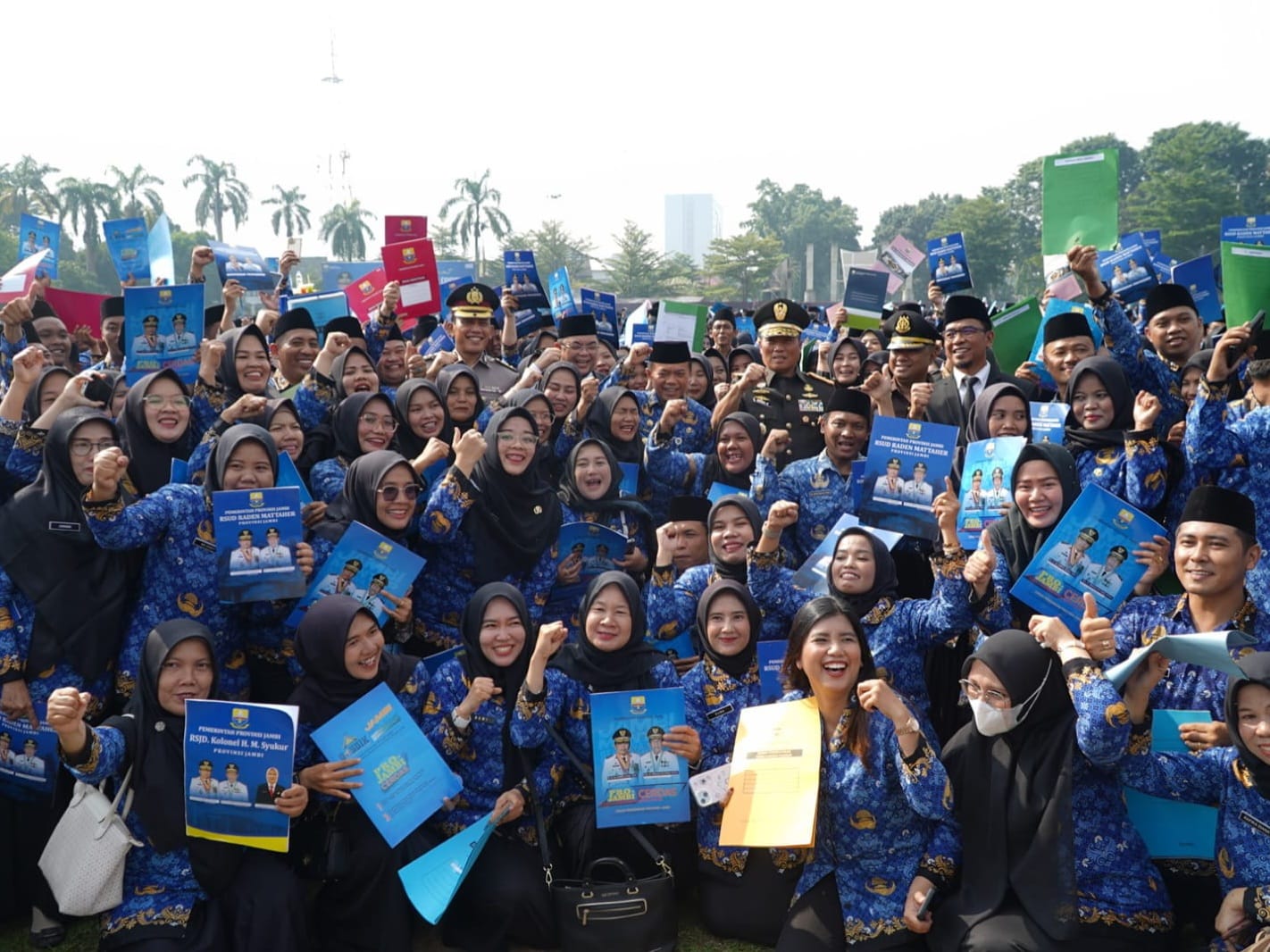 Zonabrita.com – Gubernur Jambi, Dr. H. Al Haris, S.Sos, MH, secara resmi menyerahkan Surat Keputusan (SK) kepada 6.438 Pegawai Pemerintah dengan Perjanjian Kerja (PPPK) paruh waktu dalam sebuah upacara yang berlangsung khidmat. Penyerahan SK ini bertepatan dengan Peringatan Hari Ulang Tahun KORPRI ke-54 Tahun 2025 di Lapangan Depan Kantor Gubernur Jambi, Senin (01/12) pagi.