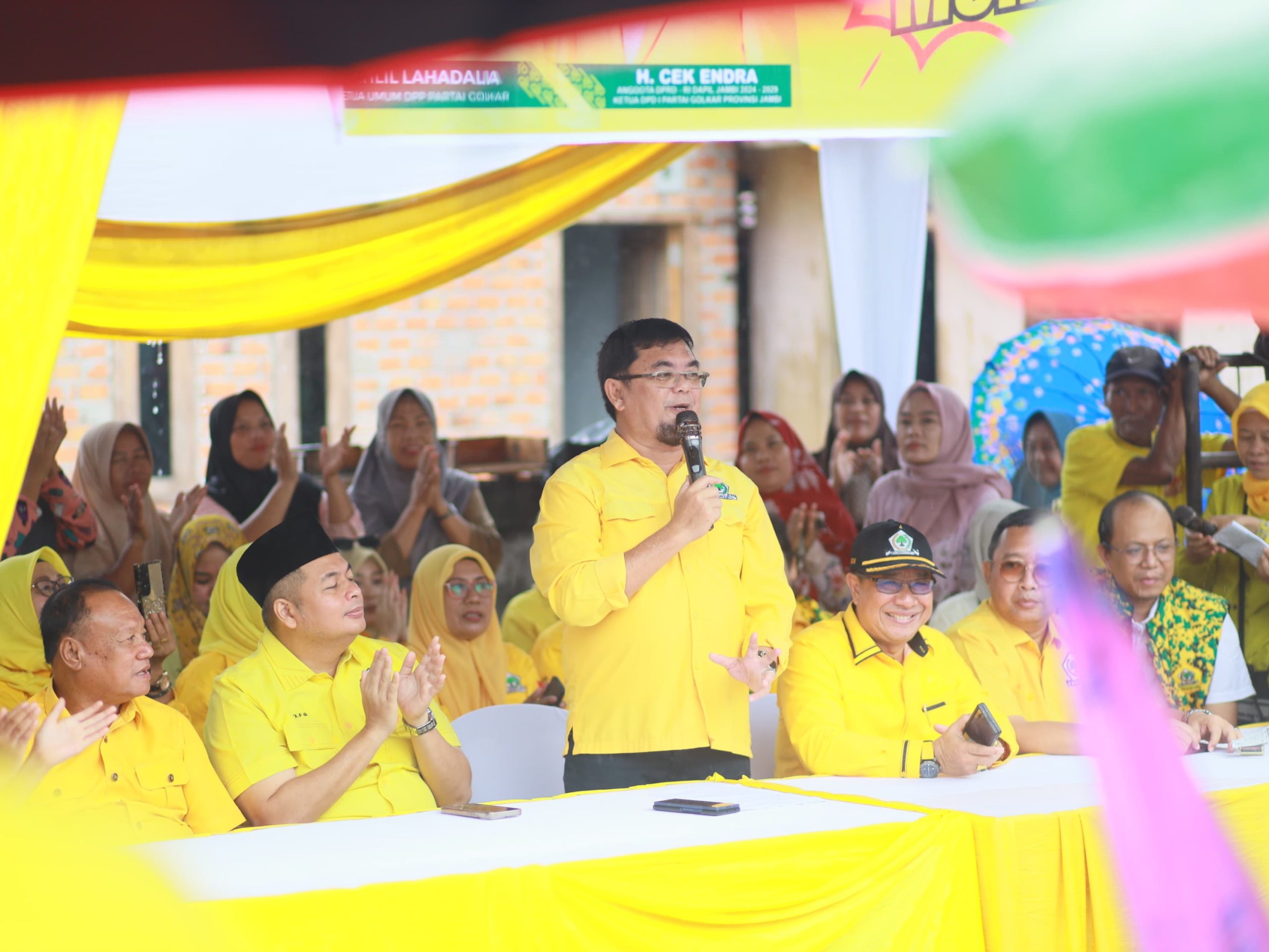 Sementara itu, Ketua DPD Golkar Provinsi Jambi, Drs. H. Cek Endra, menyampaikan arahan mendalam mengenai peran kader dalam masyarakat dan cita-cita partai.
