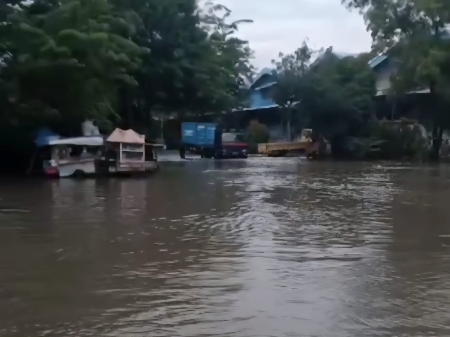 ​Air bah menggenangi sejumlah ruas jalan utama di kawasan tersebut hingga mencapai ketinggian yang mengkhawatirkan. Laporan di lapangan dan rekaman visual yang beredar menunjukkan bahwa genangan air setinggi ban kendaraan berat melumpuhkan pergerakan.