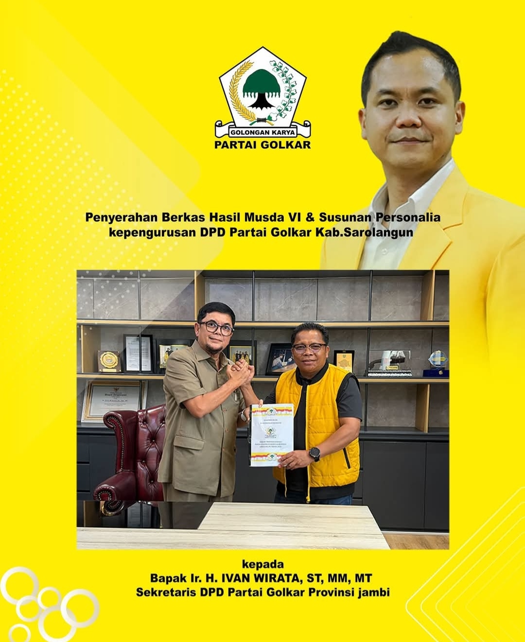 ​Penyerahan berkas ini memastikan bahwa Partai Golkar Sarolangun kini memiliki legalitas formal untuk memulai kerja-kerja pemenangan dan pengabdian di tengah masyarakat.