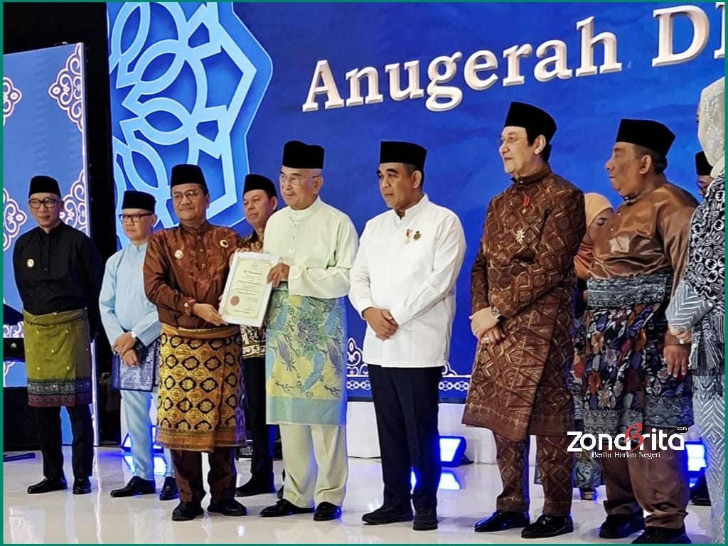 Presiden DMDI Dunia, TYT Tun Seri Setia Dr. H. Mohd Ali Rustam, yang juga Yang di Pertua Negeri Melaka, menyerahkan langsung penghargaan prestisius ini di Hotel Borobudur, Jakarta, pada Jumat (24/10/2025). Penganugerahan ini disaksikan oleh sejumlah tokoh nasional penting, di antaranya Ketua MPR RI H. Ahmad Muzani, Ketua DPD RI Sultan B Najamudin, Menteri PPMI RI Mukhtaruddin, dan Gubernur Jambi Dr. H. Al Haris.