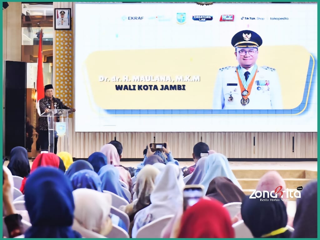 Zonabrita.com – Pemerintah Kota (Pemkot) Jambi menggandeng Pemerintah Pusat melalui Kementerian Pariwisata dan Ekonomi Kreatif/Badan Ekonomi Kreatif (Kemenparekraf/Barekraf) serta Komunitas Lokal Ekonomi Kreatif, TikTok dan Tokopedia, menggelar Workshop Emak-emak Matic (Emak-emak Melek Teknologi) pada Kamis, 16 Oktober 2025. Kegiatan ini berlangsung di Aula Griya Mayang, Rumah Dinas Wali Kota Jambi, sebagai bagian dari upaya mendukung terwujudnya Kota Jambi Bahagia dan program prioritas Pemkot Jambi.