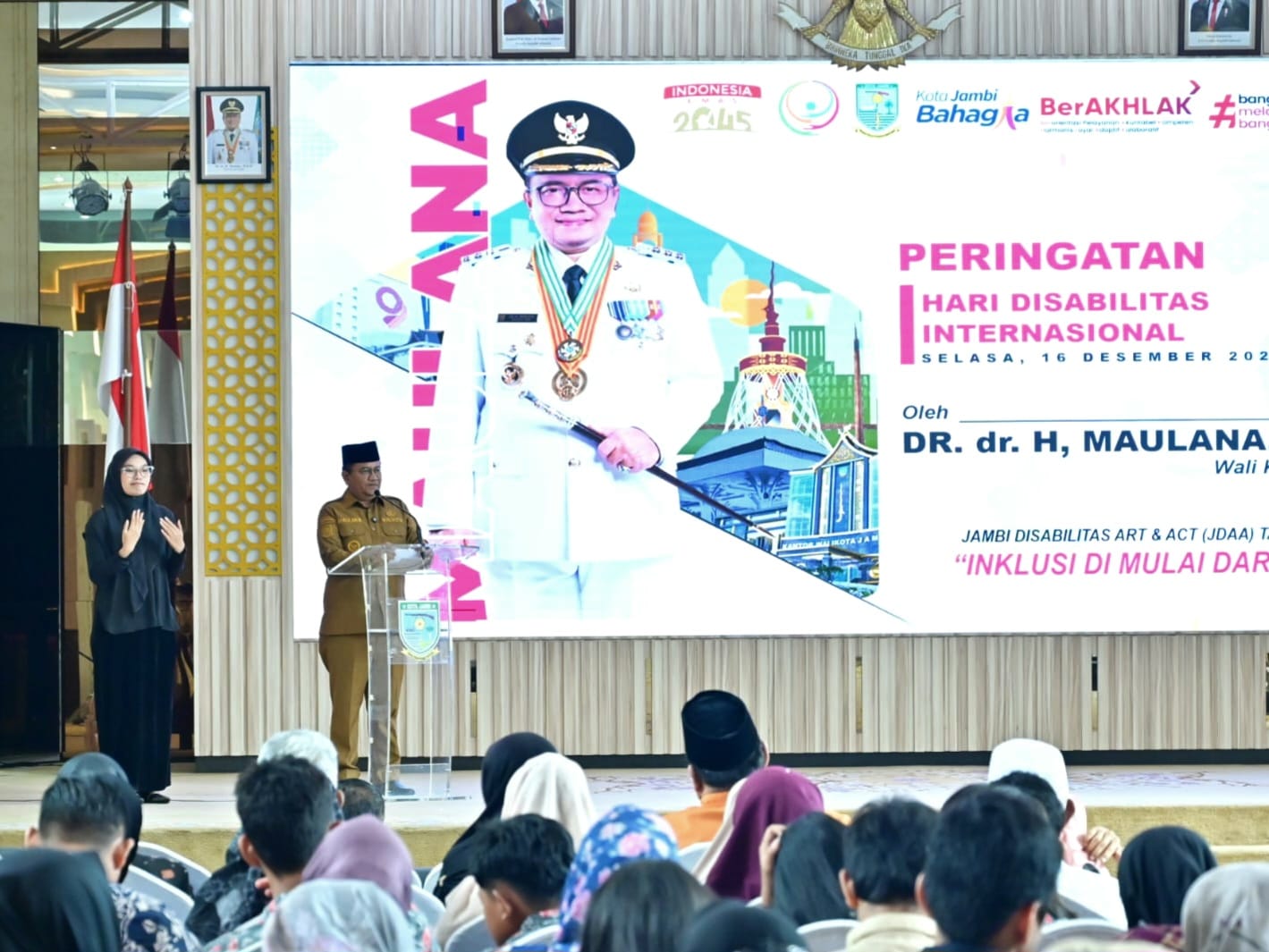 Zonabrita.com – Pemerintah Kota (Pemkot) Jambi menggelar peringatan Hari Disabilitas Internasional Tahun 2025 bertema “Inklusi Dimulai dari Kita”, pada Selasa pagi (16/12/2025), bertempat di Aula Griya Mayang, Rumah Dinas Wali Kota Jambi.