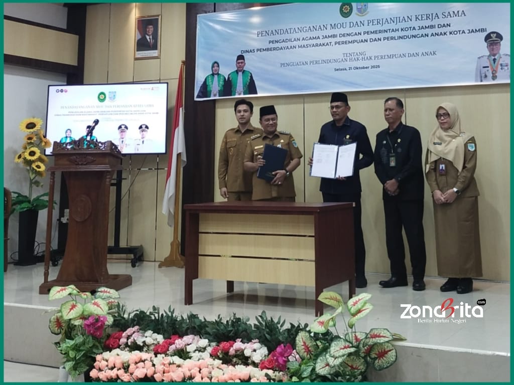 Zonabrita.com – Pemerintah Kota (Pemkot) Jambi dan Pengadilan Agama Jambi secara resmi menandatangani Nota Kesepakatan mengenai Sinergi Pelayanan Pencegahan Perkawinan Anak serta Pemenuhan Hak-Hak Perempuan dan Anak Pasca Perceraian. Acara penandatanganan ini berlangsung di Aula Lantai 2 Pengadilan Agama Kota Jambi pada Selasa, 21 Oktober 2025.