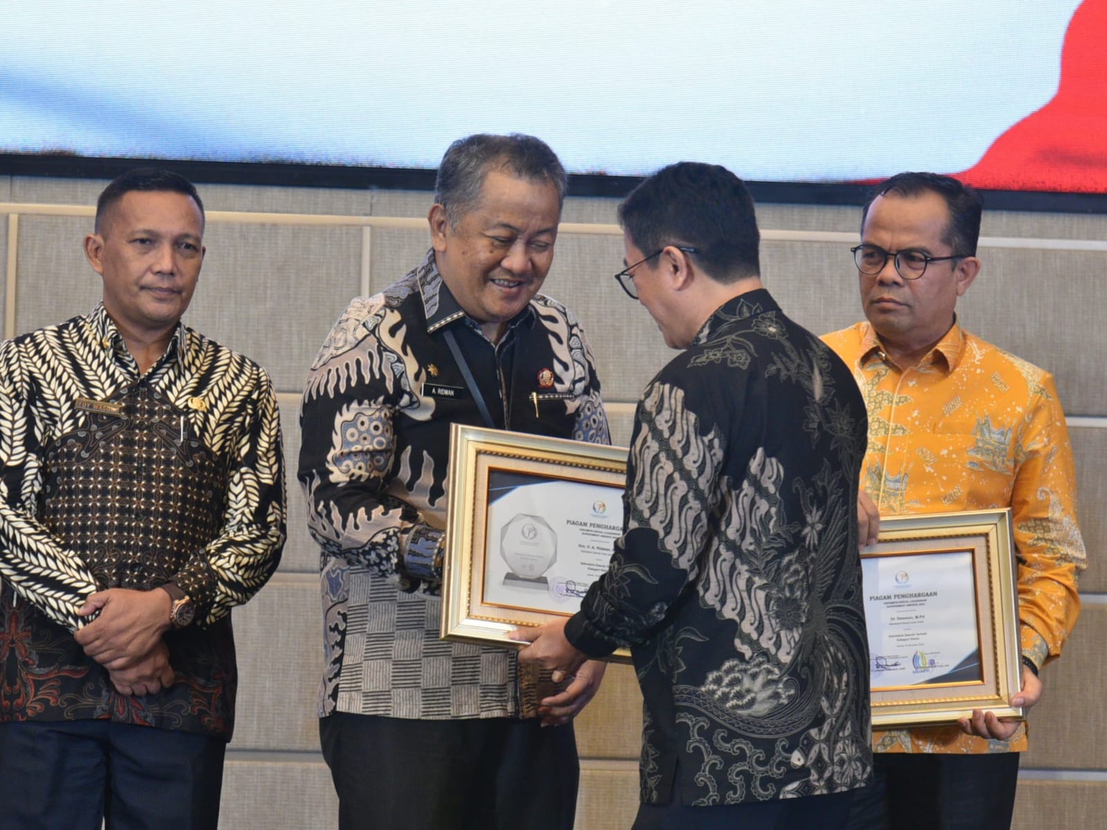Usai menerima Piagam Penghargaan, Sekda A Ridwan menyatakan rasa syukurnya.