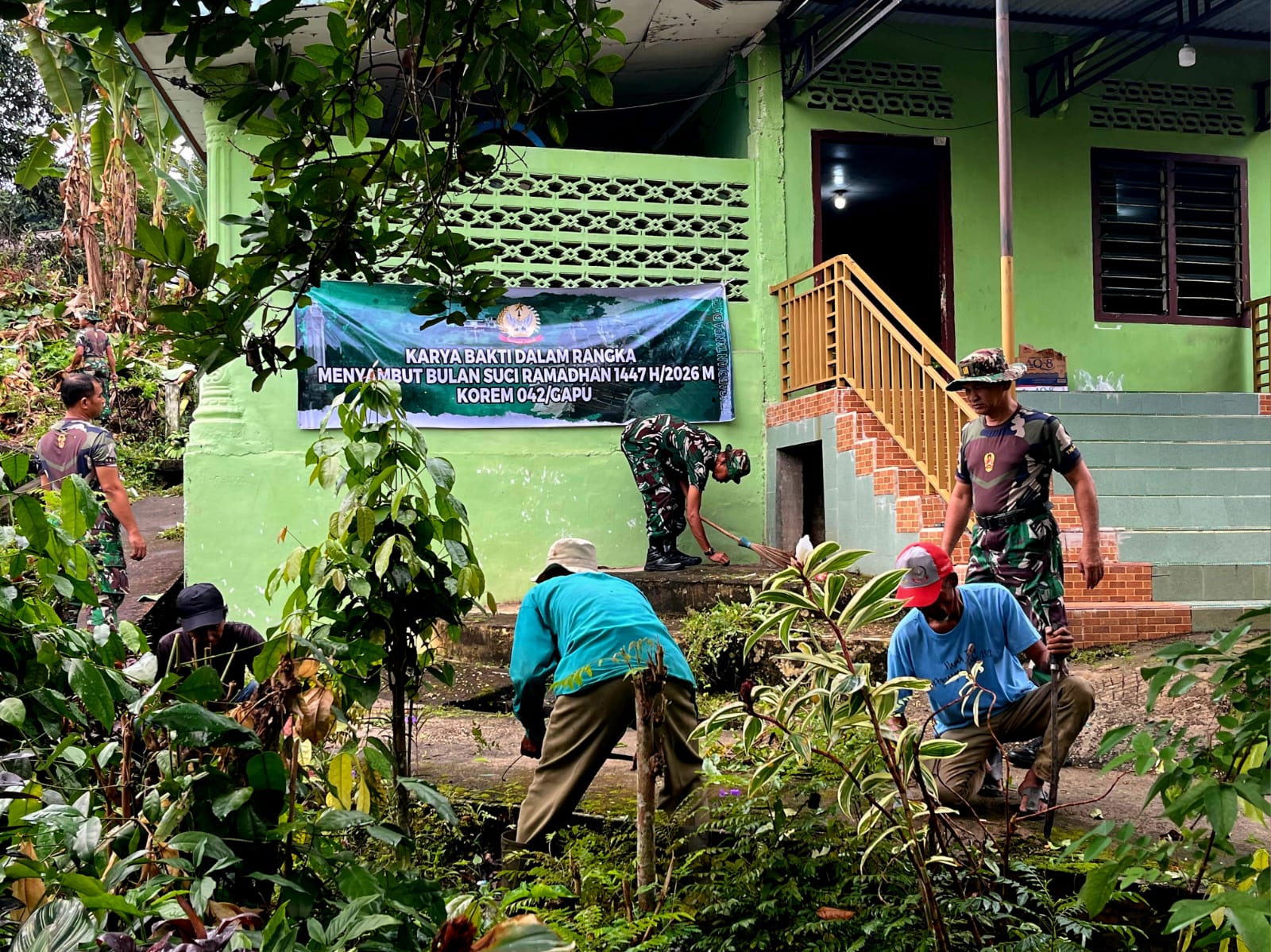 Zonabrita.com – Wujud nyata kemanunggalan TNI dengan rakyat kembali ditunjukkan prajurit Korem 042/Gapu dengan melaksanakan karya bakti bersama masyarakat membersihkan tempat ibadah dan lingkungan sekitarnya dalam rangka menyambut bulan suci Ramadhan. Kegiatan tersebut dilaksanakan di Langgar Al Falah Kel. Sungai Putri Kec. Telanai Pura Kota Jambi, Minggu (15/2/2026), sebagai bentuk kepedulian terhadap kebersihan tempat ibadah serta penguatan nilai gotong royong di tengah masyarakat.