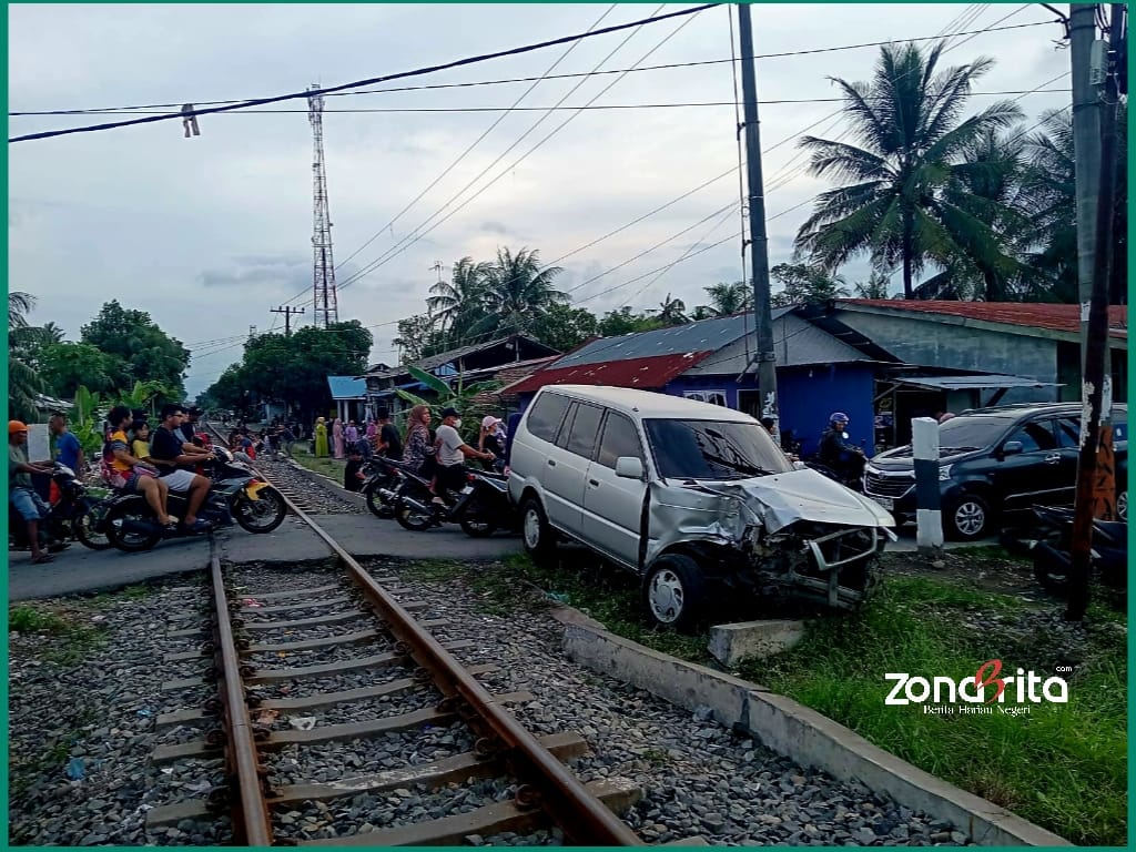 Berdasarkan pantauan media zonaberita.com di lokasi, mobil Kijang Kapsul melaju dan mencoba menyeberangi rel kereta api di perlintasan tanpa pengaman. Pada saat yang bersamaan, sebuah rangkaian kereta api melintas dan menghantam bagian depan mobil dengan keras. Akibat benturan tersebut, mobil terlempar ke pinggir rel dan mengalami kerusakan parah di bagian depan. Warga sekitar segera berdatangan untuk membantu dan mengatur lalu lintas yang sempat tersendat. (Syafwan).