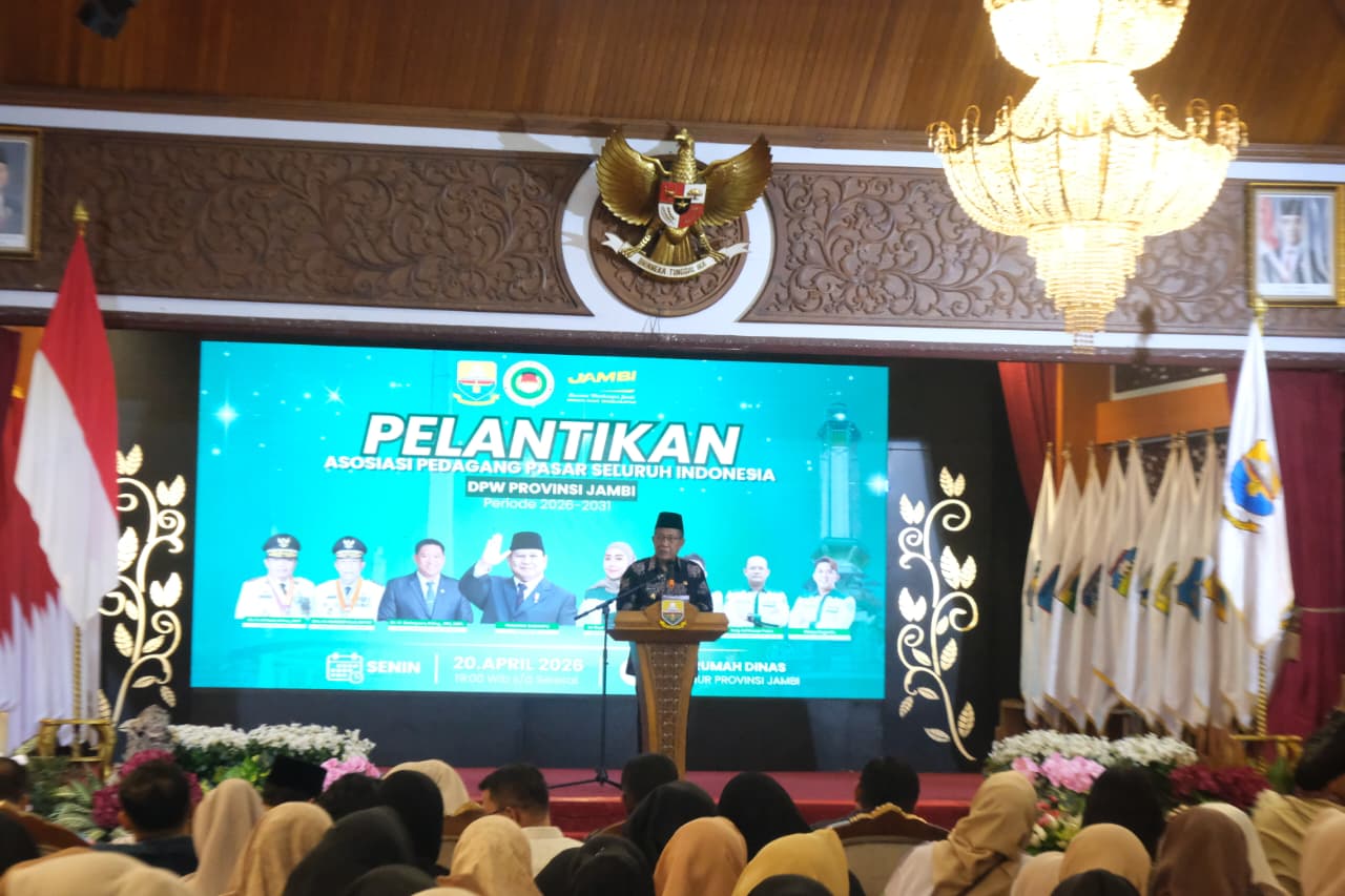 Zonabrita.com – Wakil Gubernur Jambi, Drs. H. Abdullah Sani, M.Pd.I menghadiri Pelantikan Dewan Pimpinan Wilayah Asosiasi Pedagang Pasar Seluruh Indonesia (DPW APPSI) Provinsi Jambi yang dirangkaikan dengan arahan Wakil Menteri Pertanian Republik Indonesia, Sudaryono, bertempat di Auditorium Rumah Dinas Gubernur Jambi, Senin (20/04/2026) malam.