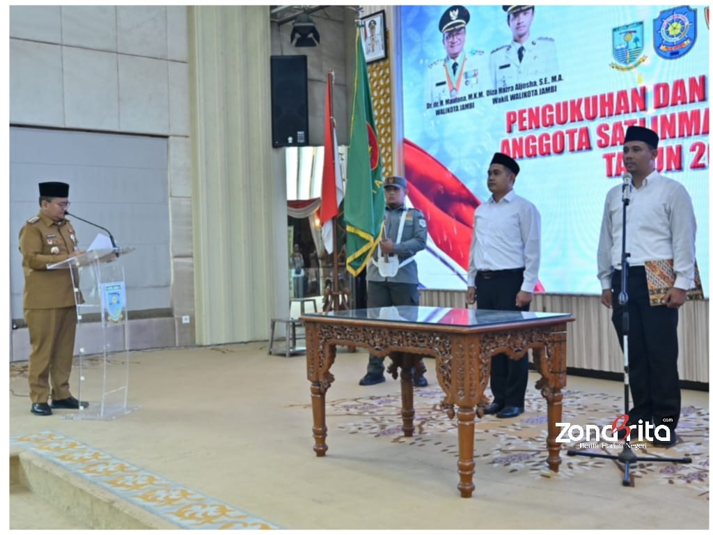 Zonabrita.com – Wali Kota Jambi, Dr. dr. H. Maulana, M.K.M., mengukuhkan Anggota Satlinmas (Satuan Perlindungan Masyarakat) Kecamatan Danau Sipin dan Kecamatan Jelutung, bertempat di Aula Griya Mayang, Rumah Dinas Wali Kota Jambi, pada Senin siang (29/9/2025).